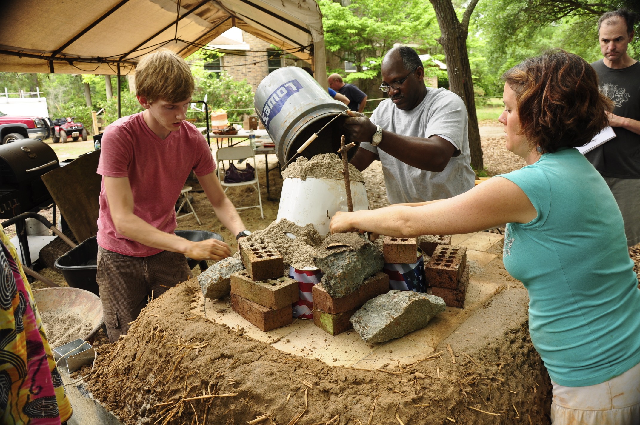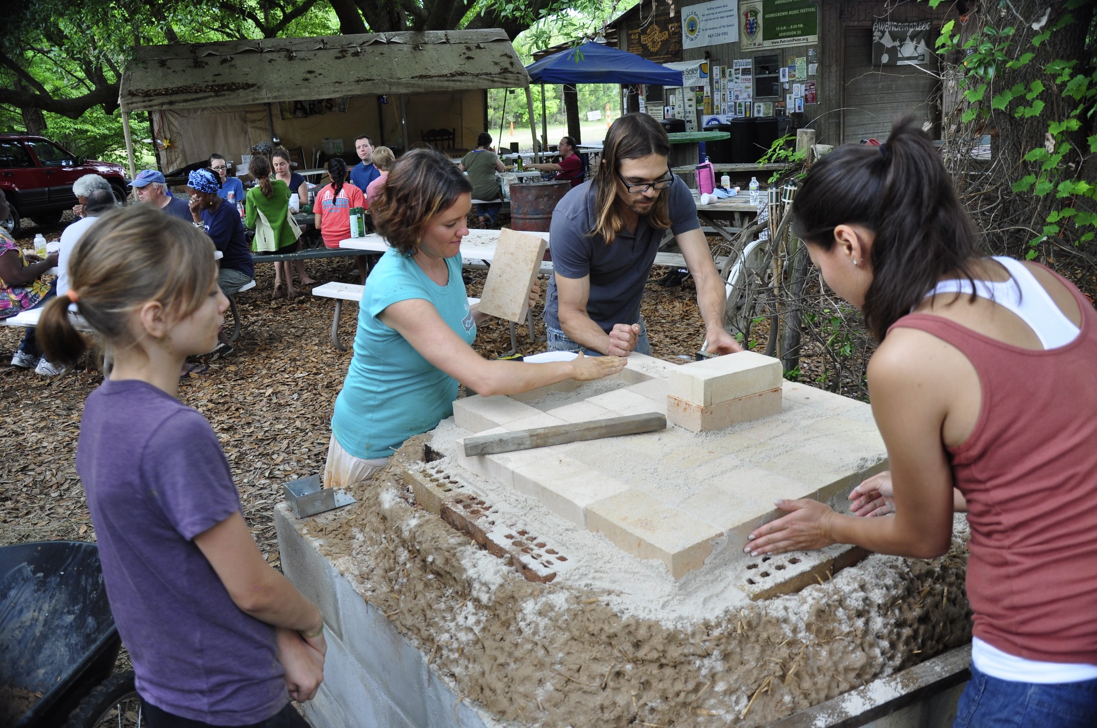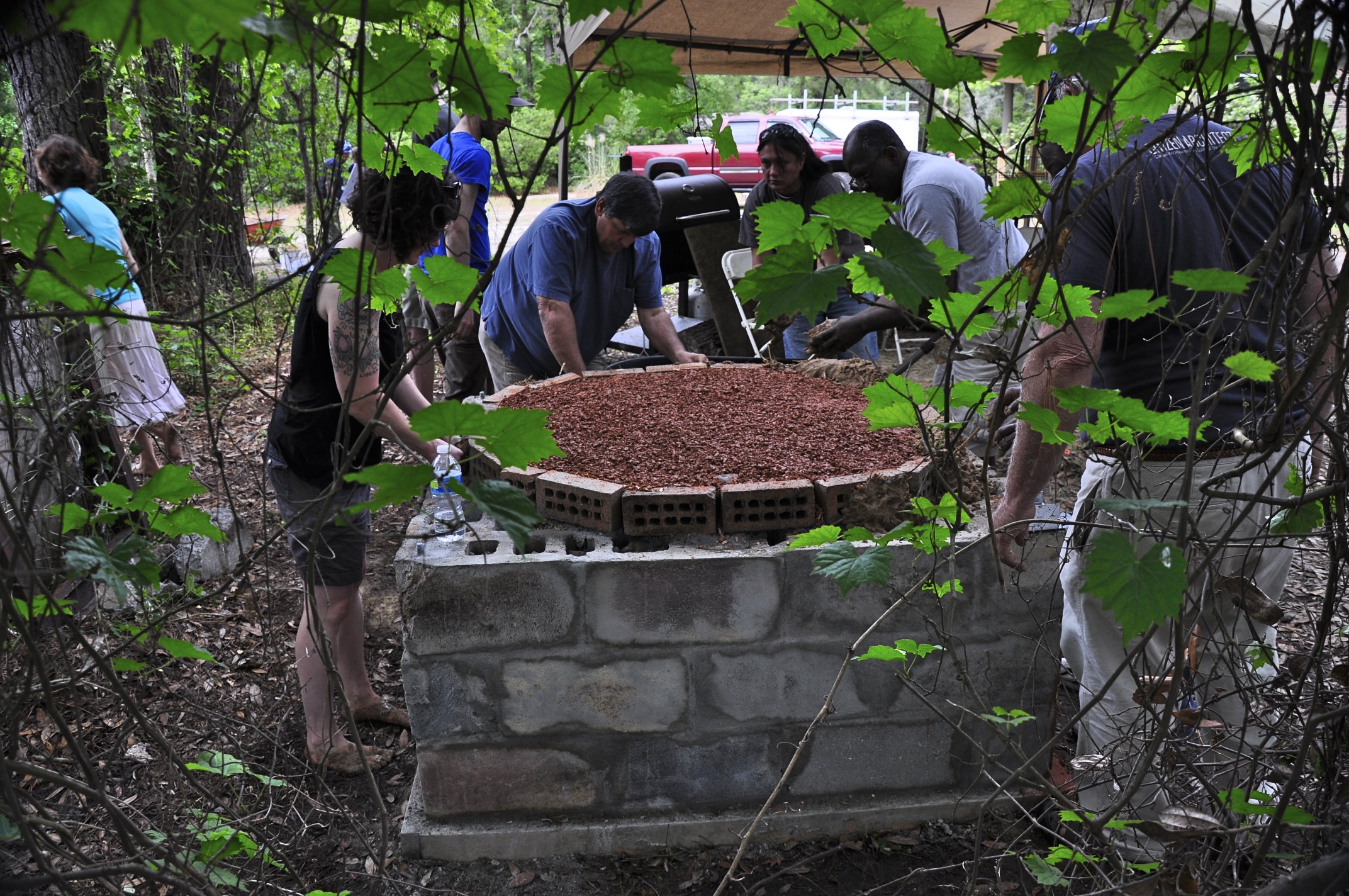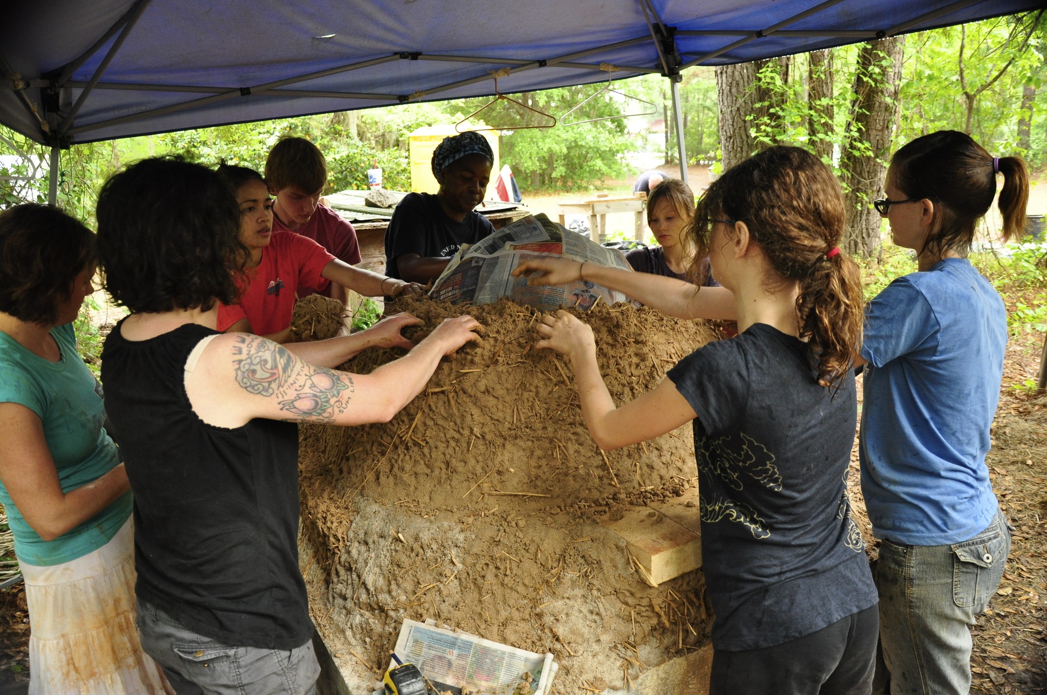 Here’s a photo gallery from my last workshop out at Awendaw Green. We built the first 2 layers of the oven, the thermal layer and the insulation layer. Check it out!